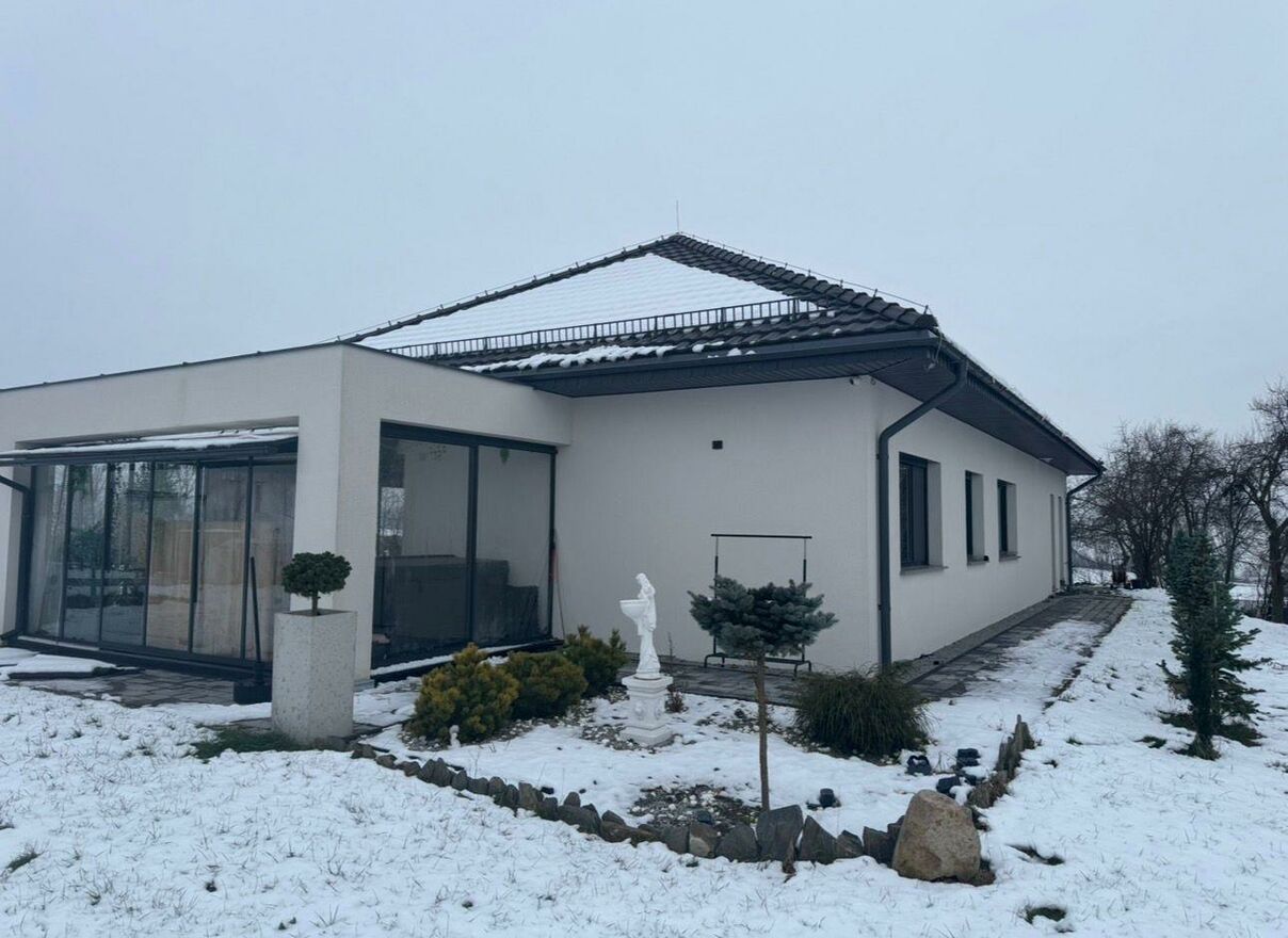 Nowoczesny, luksusowy dom parterowy z widokiem na Ślężę - położony w gminie Marcinowice !!! na pięknej dużej działce!Dom o funkcjonalnym rozkładzie, wyposażony w panoramiczne okna, które zapewniają idealne doświetlenie oraz łączą ze sobą komfort z naturą.